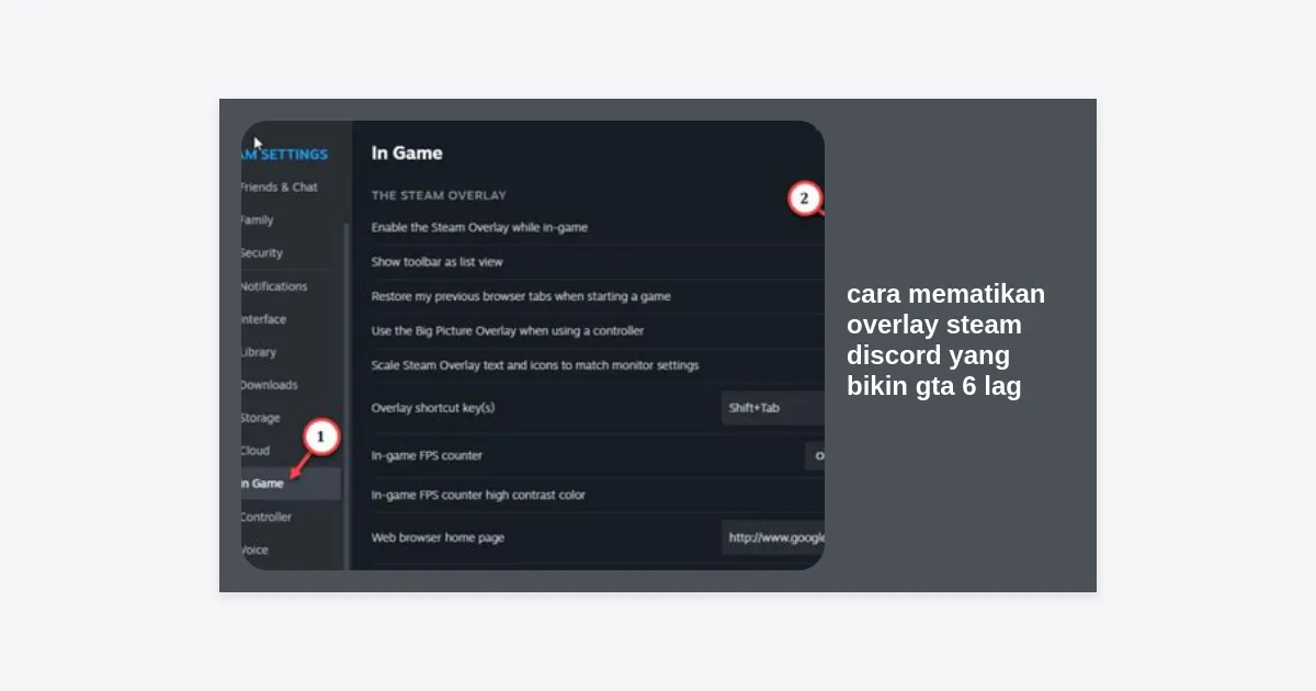 - Matikan Steam Overlay melalui menu Settings > In-Game.