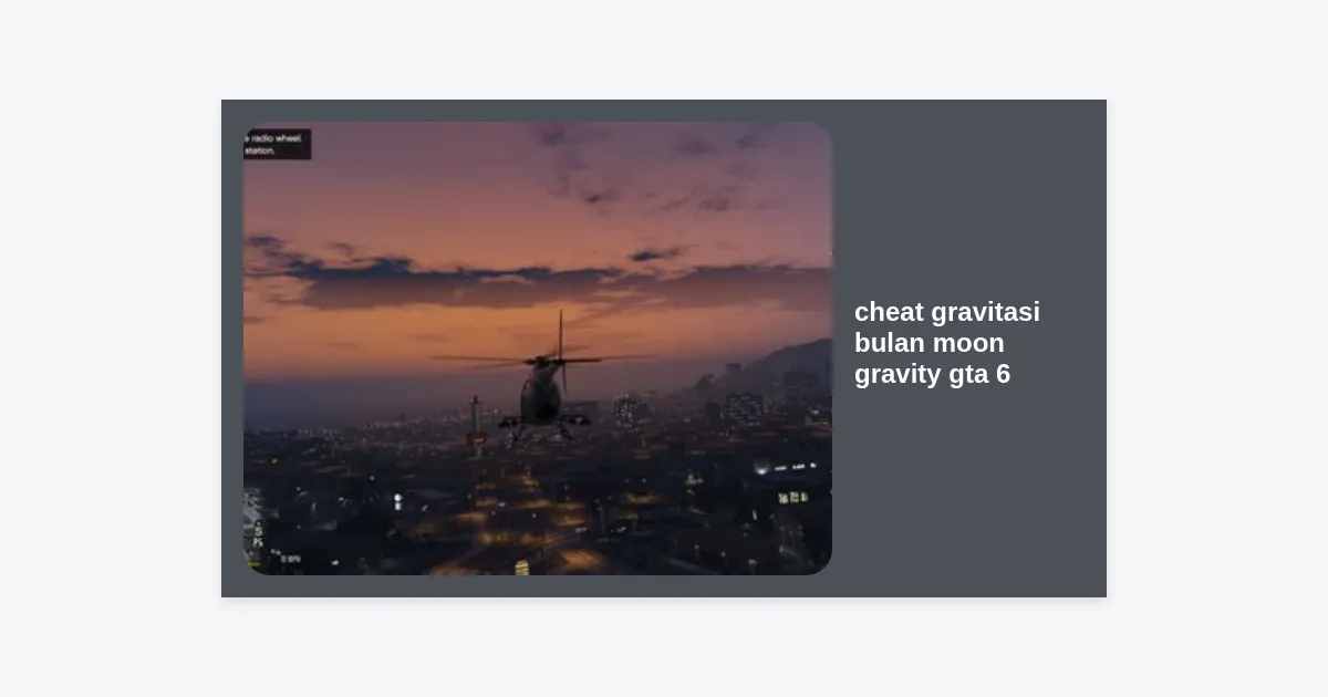 Cheat gravitasi bulan moon gravity gta 6 adalah sebuah modifikasi status fisik dalam game yang mengubah konstanta gravitasi di dunia virtual Leonida. Dalam kondisi normal, setiap objek di GTA 6 mengikuti hukum fisika yang realistis di mana kendaraan memiliki bobot yang berat dan karakter akan jatuh dengan kecepatan standar.