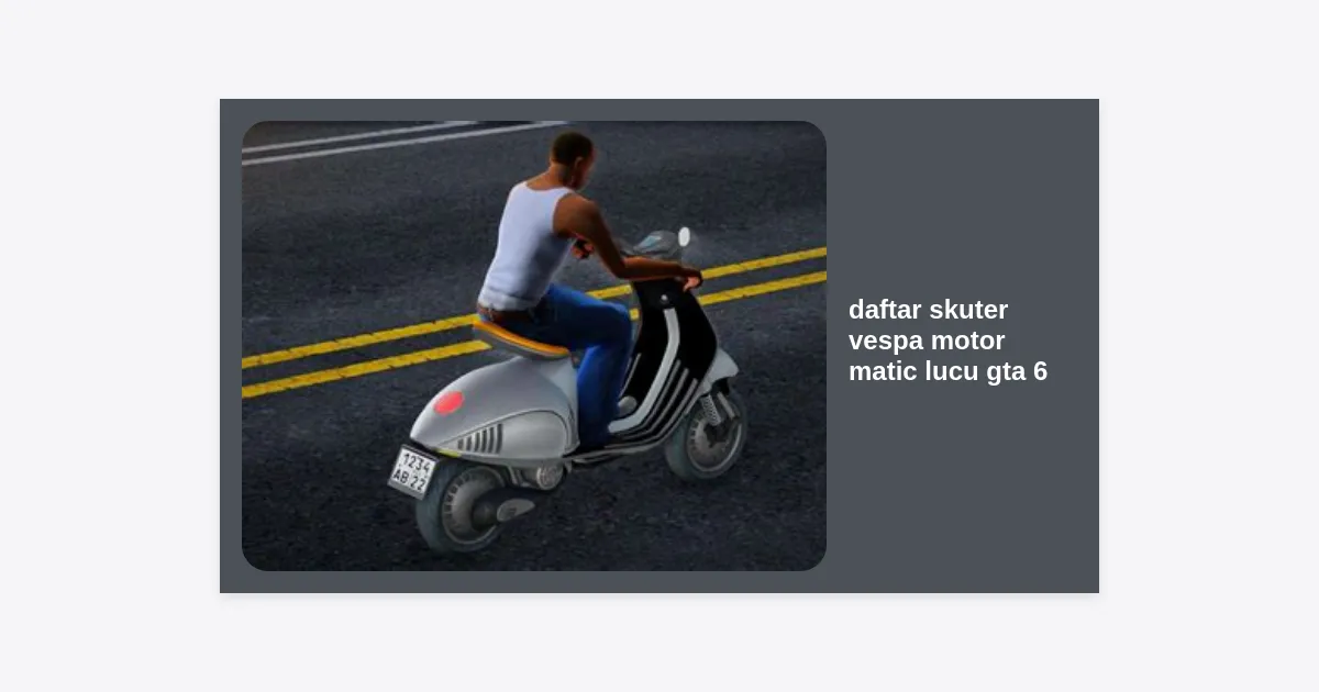 Antisipasi terhadap Grand Theft Auto VI (GTA 6) telah mencapai puncaknya semenjak Rockstar Games merilis trailer perdana yang memukau. Salah satu aspek yang paling dinanti oleh para pemain bukan hanya misi kriminalnya, melainkan juga koleksi kendaraannya. Bagi para penggemar gaya retro dan estetika santai, daftar skuter vespa motor matic lucu gta 6 menjadi topik hangat yang banyak dibicarakan. Di tengah hiruk-pikuk kota Vice City yang modern, mengendarai skuter matic bergaya klasik memberikan nuansa unik tersendiri.