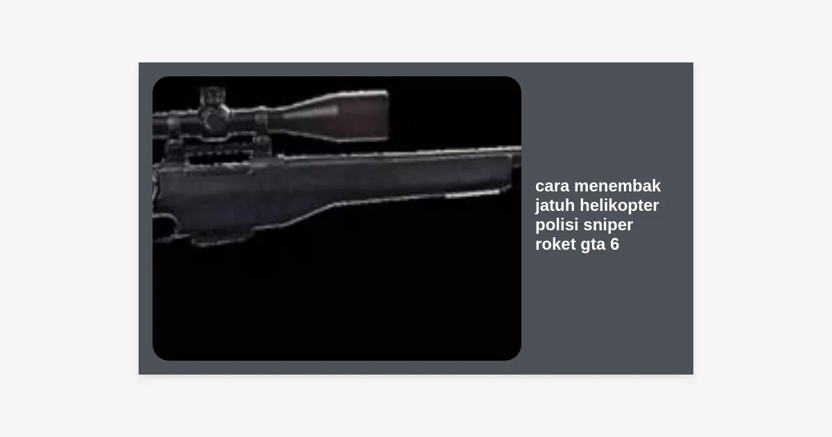 Menggunakan Sniper Rifle adalah cara yang paling memenuhi syarat “High Risk, High Reward”. Ini adalah metode paling elegan dalam cara menembak jatuh helikopter polisi sniper roket gta 6 karena membutuhkan ketenangan dan akurasi tinggi. Di GTA 6, Sniper Rifle memiliki efek bullet drop dan kecepatan peluru yang lebih realistis dibandingkan seri sebelumnya.