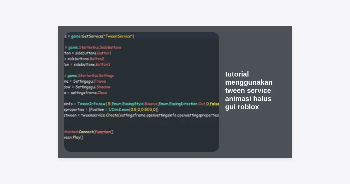 Dalam tutorial menggunakan tween service animasi halus gui roblox ini, konsep di atas adalah pondasi. Perhatikan bahwa kita menggunakan UDim2 untuk properti GUI. Penggunaan tipe data yang tepat sangat krusial agar animasi berjalan lancar.