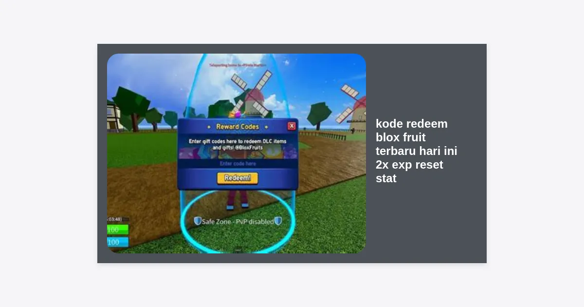 Apakah Anda sedang mencari kode redeem blox fruit terbaru hari ini 2x exp reset stat untuk mempercepat progres level karakter Anda? Anda berada di tempat yang tepat. Blox Fruits adalah salah satu game paling populer di platform Roblox yang menawarkan petualangan epik di lautan luas, di mana setiap pemain berlomba-lomba menjadi bajak laut terkuat atau pelindung laut yang tangguh. Namun, tantangan di Grand Piece ini tidaklah mudah; leveling bisa terasa sangat lambat tanpa bantuan tambahan.